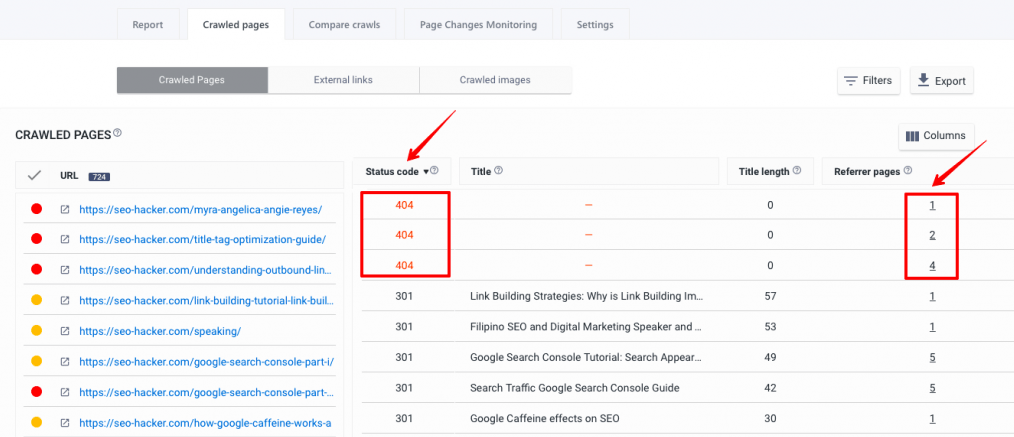 So, if you have many broken links on your website, you are just wasting resources. Moreover, they can hurt user behavior metrics and negatively affect your rankings. To detect broken links, I would recommend getting audit reports with the SE Ranking Website Audit. The tool sorts all your web pages by status code to view which ones are 404.